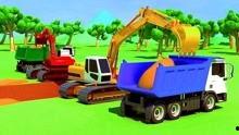 挖土机视频儿童动画片,挖土机动画之旅